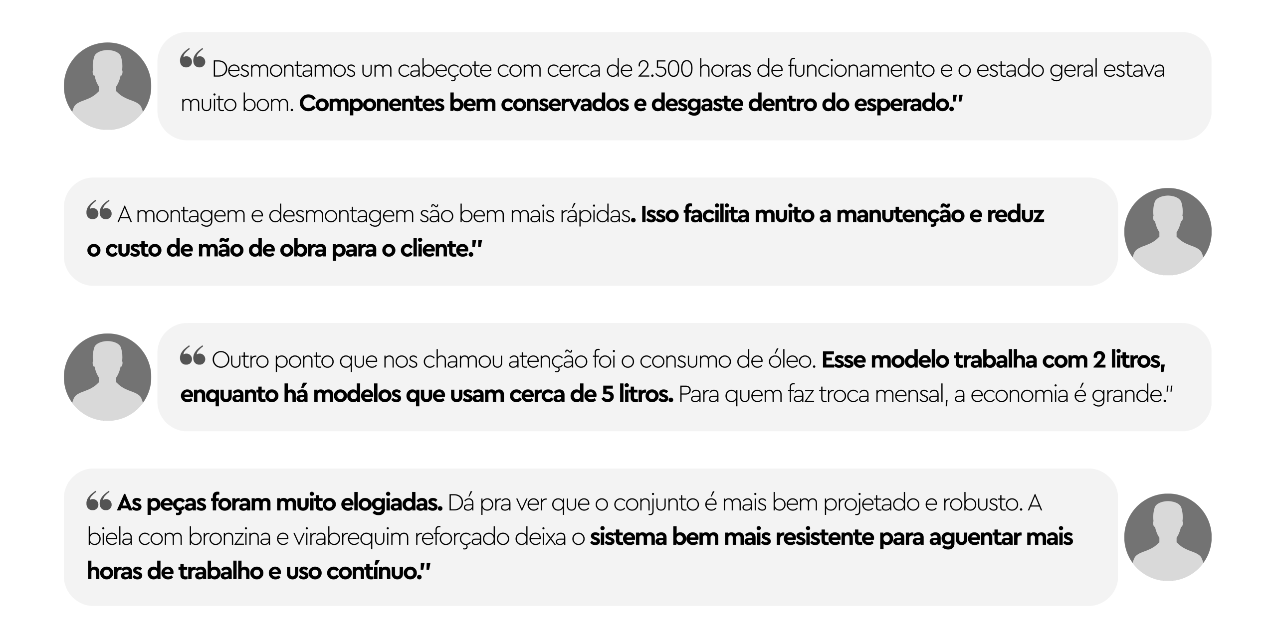 O resultado é claro: um cabeçote mais moderno, eficiente e durável, pensado para quem precisa de desempenho constante e menor custo de manutenção.