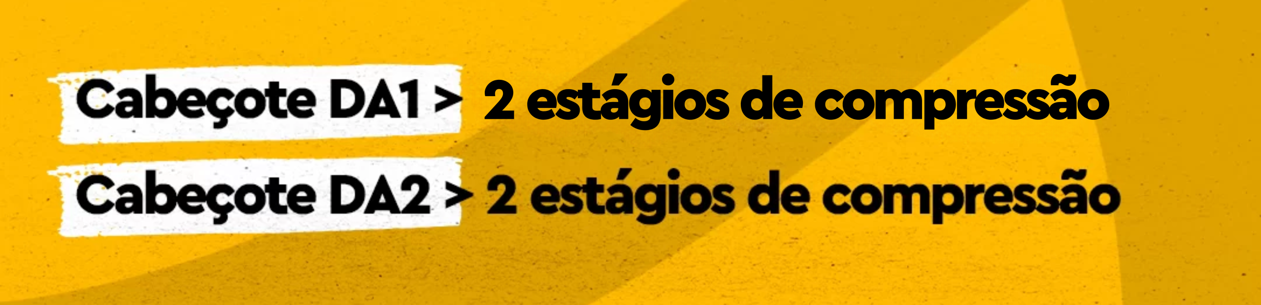 Nesse tipo de cabeçote, o ar passa por duas etapas de compressão, o que garante melhor rendimento térmico e operação estável. O DA1 é indicado para usos industriais e de alta demanda, atendendo uma ampla variedade de atividades sem perder desempenho e relevância no dia a dia.